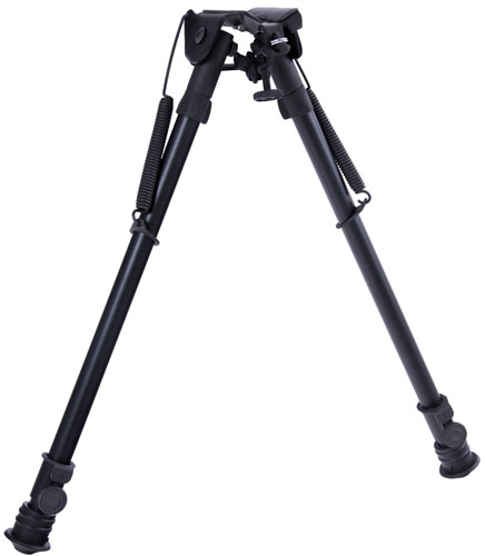 FEATURES-Sling Swivel Stud Mount-Lever Locking Pivot-Adjustable from 9" to 13" High-Swoop back foldable legs-High Strength Aluminum Construction-Black