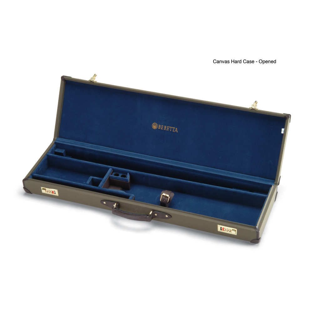Secure your shotgun in style with Beretta\'s hard canvas case. This 22-ounce \"knockabout\" case is finished with full-grain leather corner protectors and is extre...