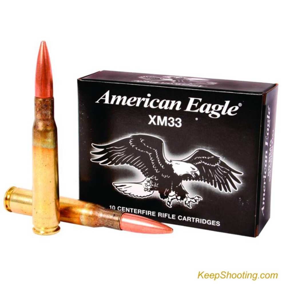 | With great ballistics and reliable feeding, you\'ll find Federal\'s American Eagle® loads more than suitable for honing your skills. Whether your targets are paper, aluminum or varmint, we\'re here to keep you shooting all day. American Eagle rounds are loaded to the same specifications as Federal\'s Premium® loads, but at a more practical price. |